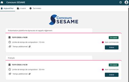 Pour les Sessions d'entrainement, sur prepaSESAME, l’accès aux épreuves débute à 17h45.