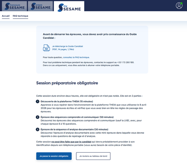 J'accède à la session préparatoire obligatoire et aux épreuves écrites depuis mySESAME