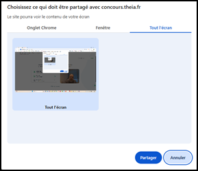 Si vous avez plusieurs choix (écran / fenêtre / onglet) et que ça échoue, reprenez avec Tout l'écran.