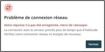FAQ technique Je n’arrive pas à enregistrer une réponse Essayez d’actualiser la page. Vérifiez votre connexion Internet. Si le problème persiste, prenez une capture d’écran et contactez le support. Retour à la FAQ technique